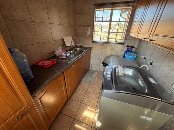 This well-designed home features a contemporary kitchen that flows seamlessly into a comfortable lounge, creating an inviting living space. A dedicated scullery adds practicality and extra storage.