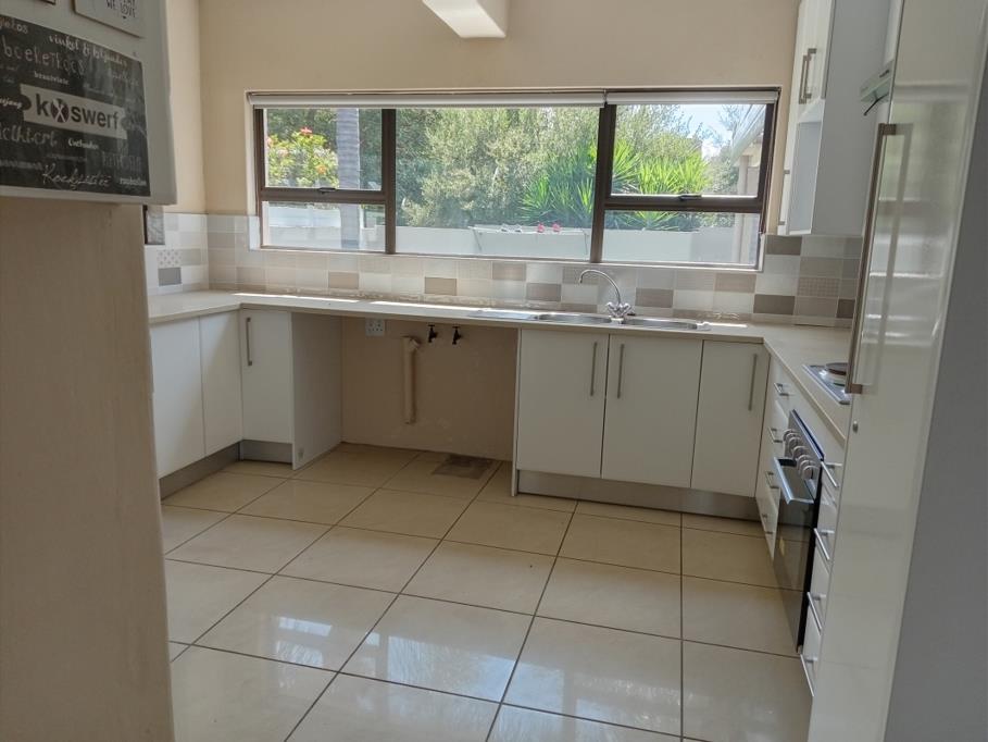 The open-plan kitchen and dining area create a welcoming flow, perfect for family living and entertaining. Step outside to a covered patio with a built-in braai area and mdash ideal for relaxed gatherings all year round.