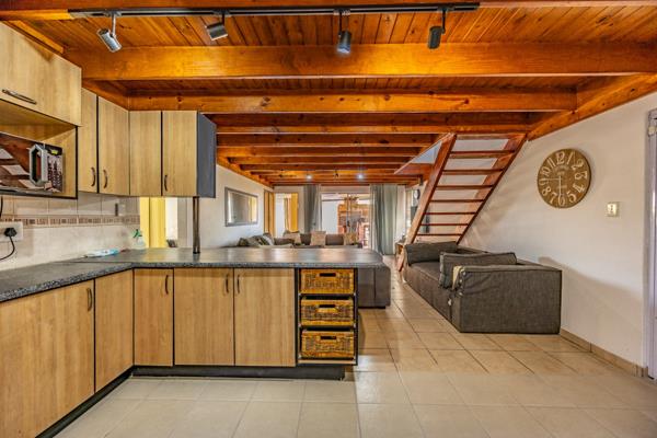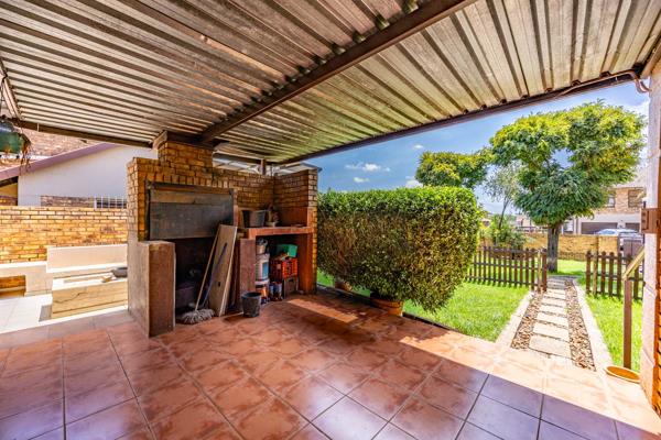 A double garage with a double carport positioned in front ensures ample parking for family and guests. The garage offers direct access into the home, leading straight into the lounge area practical and secure. The garden wraps around the entire property, creating space for kids to run, pets to roam, and families to entertain properly. The covered patio features a built-in braai, while a dedicated boma area sets the scene for late evenings around the fire.