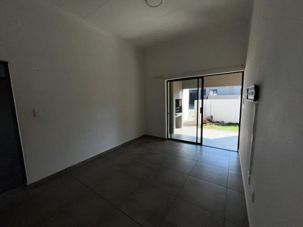 Open plan lounge and kitchen. Modern kitchen with granite tops. 2 Bedrooms. Main bedroom with an en-suite bathroom (shower, toilet and basin). 2 Modern bathrooms in total. Guest bathroom offers a bath, shower, toilet and basin. Single garage. Single carport. Private garden. Pets allowed. Excellent security measures in place - LOCK UP AND GO!