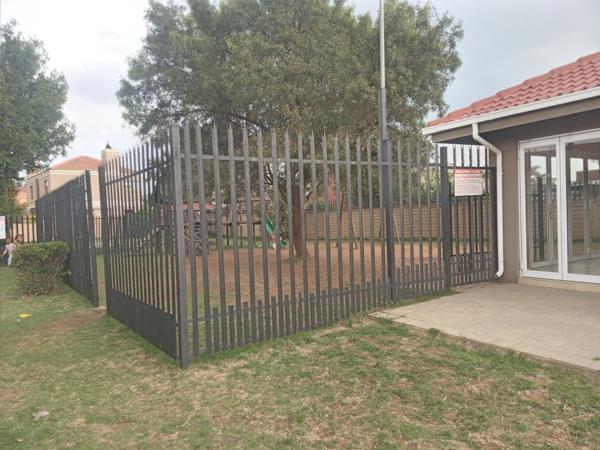 This inviting 2-bedroom, 1-bathroom unit offers comfortable living within a secure complex environment in Kempton Park Ext 4. The complex entrance features a robust gated entry system, complete with electric fencing and a boom gate, ensuring restricted access and peace of mind for residents. The residential buildings are well-maintained, contributing to a pleasant first impression, complemented by paved areas and clear signage. The unit itself benefits from strong security features, including a spiked metal fence and a high boundary wall with razor wire, providing an enhanced sense of safety.