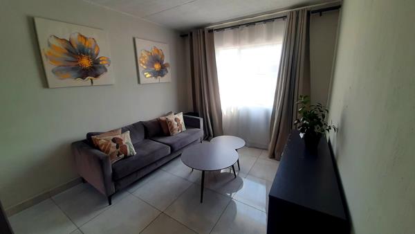 Featuring two dreamy bedrooms with built-in cupboards, modern bathroom with a shower, comfortable lounge, stylish kitchen, high quality porcelain tiles throughout and extra-length garage for parking and storage.