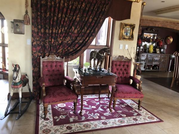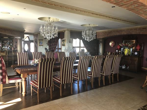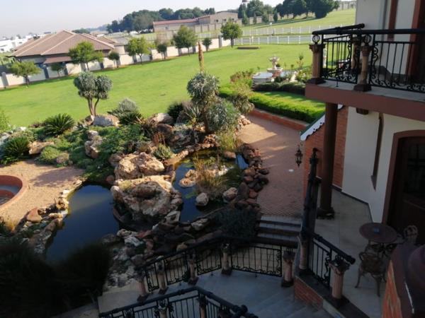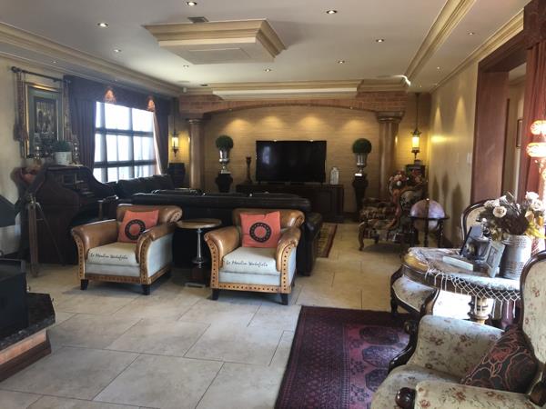 This exclusive masterpiece mansion offers 6 Bedrooms, 5 Bathrooms, 8 Garages, Parking for 18 Cars, 2 OfficesStudies, Flatlet, Cinema Room, Full Guest Suite, Open-plan Fitted Bar, WorkshopGarage, Gym with Bathroom, Entertainment Room with Bathroom, Central Air Conditioning, Staff Quarters, Wine Tasting Cellar, Deck, Open Plan Kitchen, Large Walk-in Pantry, Scullery, Laundry, Sparkling Swimming Pool that provides for lazy tranquil afternoons in the sun embraced by large walk around Landscaped Garden with Boma and beautiful Scenic Views.