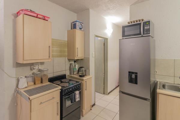 The unit is fully tiled and situated on the first floor.