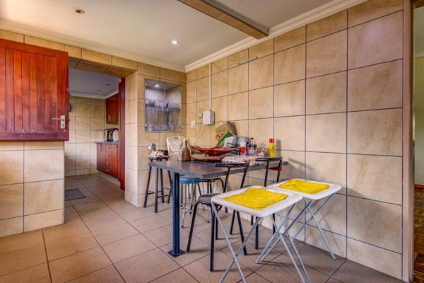 A covered patio with a built-in braai area, perfect for hosting friends and family. Huge corner stand
