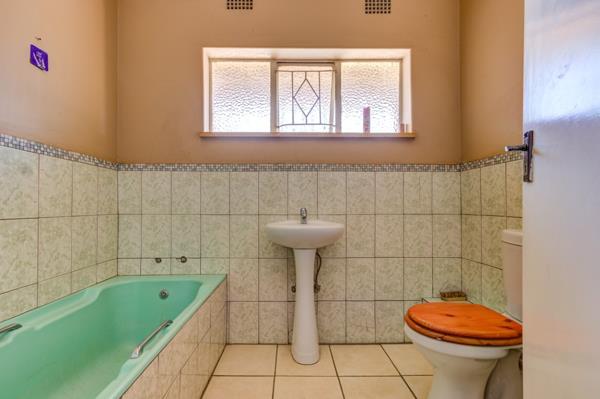 The main residence features five generously sized, fully tiled bedrooms, all offering excellent natural light and ample space for comfortable living. These bedrooms are serviced by two neatly tiled bathrooms, designed for practicality and ease of maintenance.