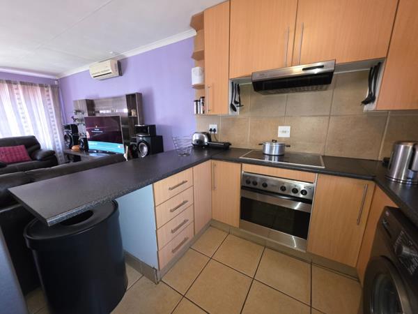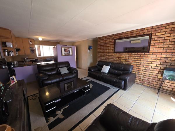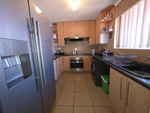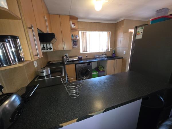 This lovely facebrick, simplex townhouse is a great buy. Featuring 3 good sized, bedrooms with laminated wood flooring and a modern full bathroom with separate toilet. The lounge is spacious and open plan to the kitchen offering a breakfast counter and lots of cupboards. Through the glass door in the lounge, you access the private garden and your lapa with built in braai. This property also has a garage.