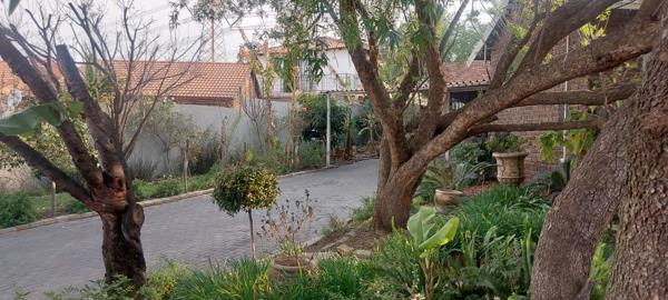 The yard is a nature lovers delight, boasting an array of fruit trees, a vegetable garden, and beautiful established greenery. Security is top-notch with burglar bars, CCTV cameras, and a stylish high white wall in front.