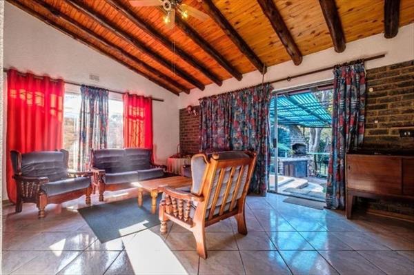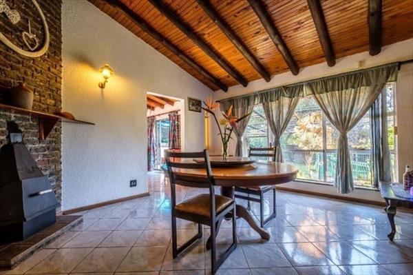 Entrance hall. Large open plan lounge. Formal dining room that open up onto the garden. 3 Bedrooms. 2 Bathrooms. Main bedroom has an en-suite bathroom. Family sized kitchen with a gas stove. Laundry room with a shower inside. Double tip up garage. Double carport parking. Large garden. Pool to make a splash in. Covered patio. Jacuzzi - for total relaxation after a long day. Braa area.
