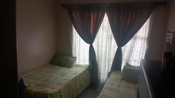 A sliding door opens to your own garden area, ideal for relaxing or hosting a braai. The home also features a double garage for secure parking.