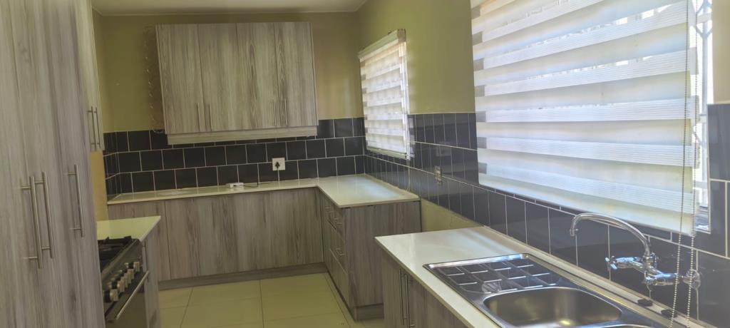 Modern and functional with ample cupboard space, fitted stove and oven, and sleek finishes. Theres plenty of room for appliances and convenient access to the outdoor area.