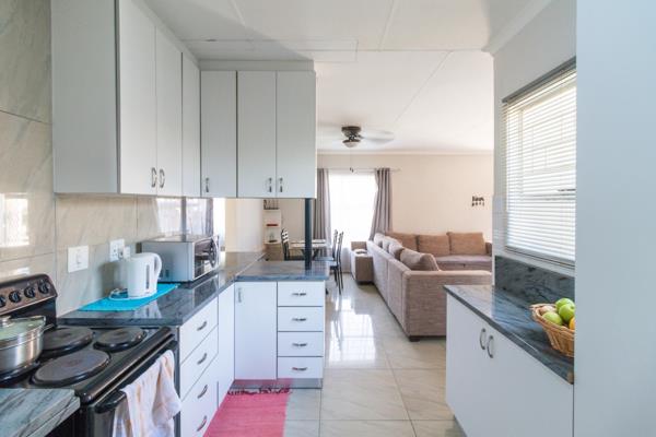 Step into a warm and inviting space featuring 2 fully tiled, spacious bedrooms with built-in cupboards and 2 bathrooms for added comfort. The modern kitchen flows seamlessly into the open-plan dining and lounge area, opening out to a private gardenperfect for relaxing or entertaining.