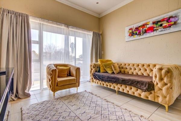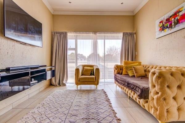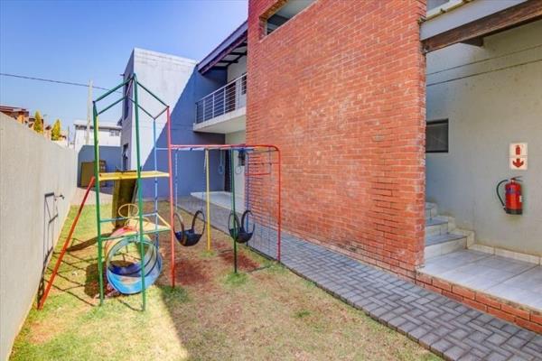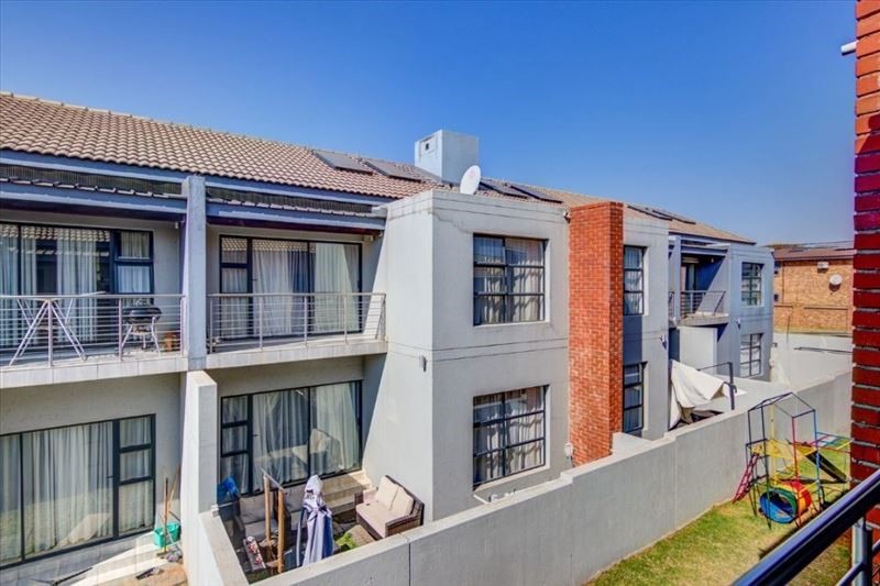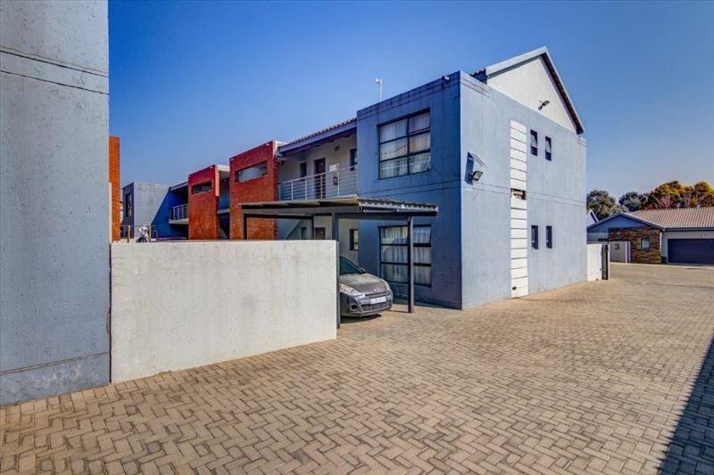 Upstairs unit with 2 tiled bedrooms with built-in cupboards, 2 modern tiled bathrooms (1 with shower, other with bath). Spacious tiled open plan lounge/ dining and kitchen. Large open plan area, large enough for a lounge suite and small dining suite. Kitchen with built-in cupboards, under counter oven, extractor fan, Granite tops and under counter space for a dishwasher / washing machine and pantry. 1 Carport and communal pool. 24 Hour guard at the gate entrance. Very popular complex.