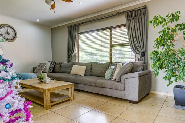 When entering the home you are greeted with a very spacious, tiled open plan lounge and kitchen area. The lounge can also be used as a dining room, just depends on your needs. The kitchen is fitted with a gas stove, under counter oven, and space for a double fridge. Granite tops and a breakfast nook together with a separate scullery with space for all your appliances and a double sink. The lounge walks out onto an enclosed patio with a built-in braai and overlooking a solar heated sparkling pool and garden big enough for your kids and dogs or cats to enjoy.