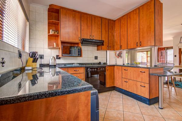 Modern Kitchen A chefs delight with plenty of built in cupboards, stove , double sink and perfects light. The open plan allow you to engage with your family while preparing meals.