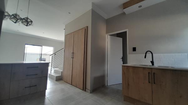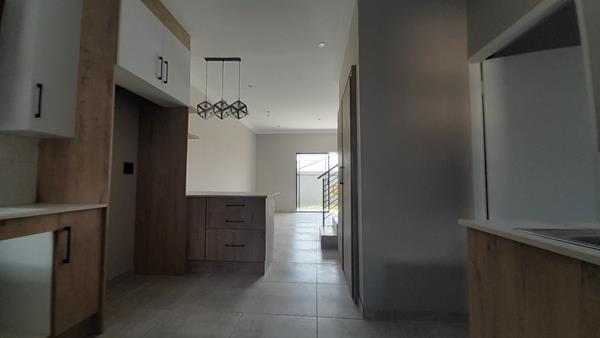 Stylish 2-bed, 2-bath residence with 2 garages in a secure setting featuring 24-hour security and a controlled access gate. This home offers built-in cupboards, a built-in braai, and a well-appointed kitchen. Enjoy a spacious dining area and lounge, leading to a charming patio overlooking the garden. The property is equipped with electric fencing for added security, and pets are welcome. Additional features include a guest toilet, intercom system, and contemporary paving.