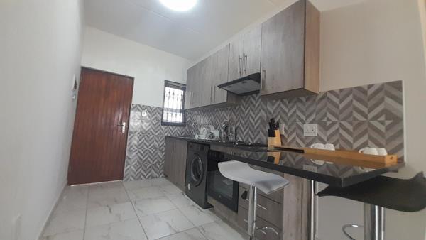 Modern 2-bed, 1-bath residence with 1 covered parking space in a secure community boasting 24-hour security and a controlled access gate. This home features built-in cupboards, a well-equipped kitchen, and a designated dining area. Enjoy a comfortable lounge area leading to a private patio overlooking the fenced yard. Paving adds a contemporary touch to the exterior, and pets are welcome in this pet-friendly property. Additional security is provided by a dedicated security post.