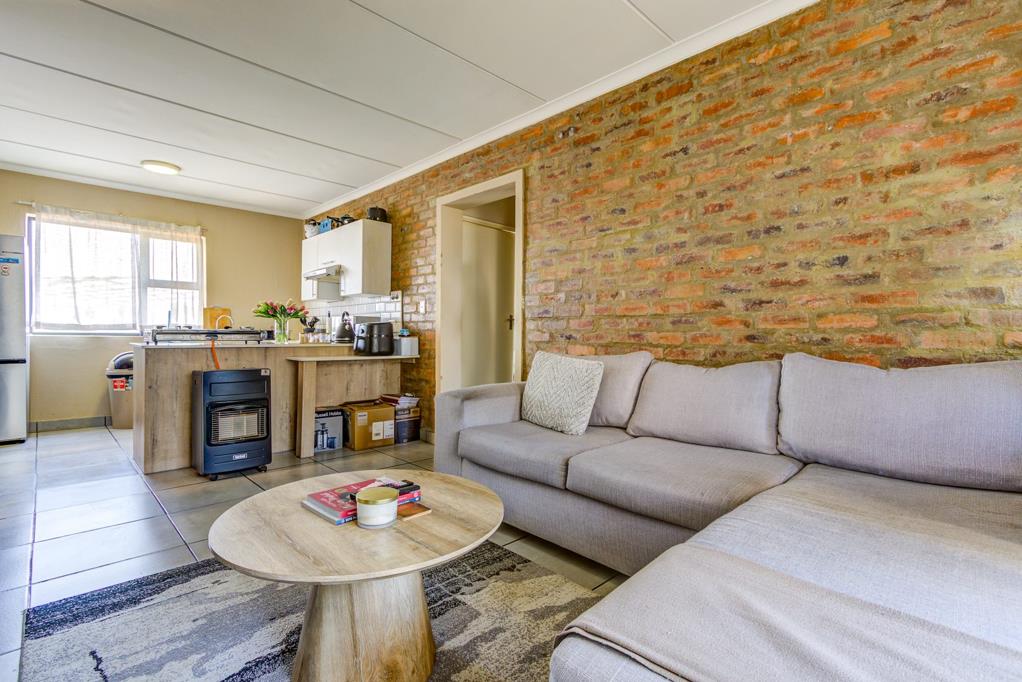 Open-plan living and dining area with natural light and a balcony with braai facility