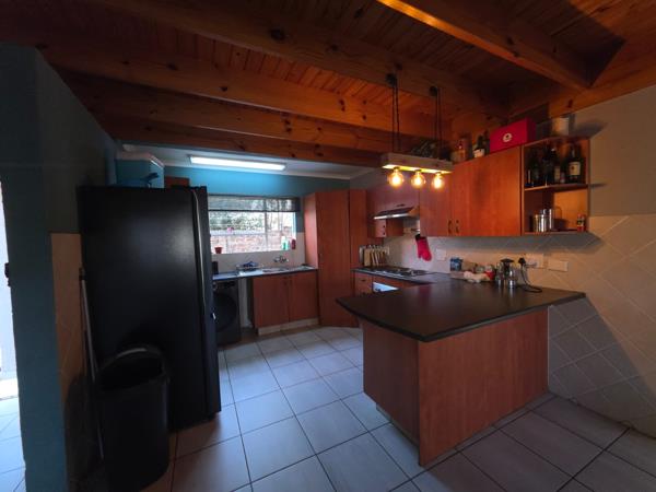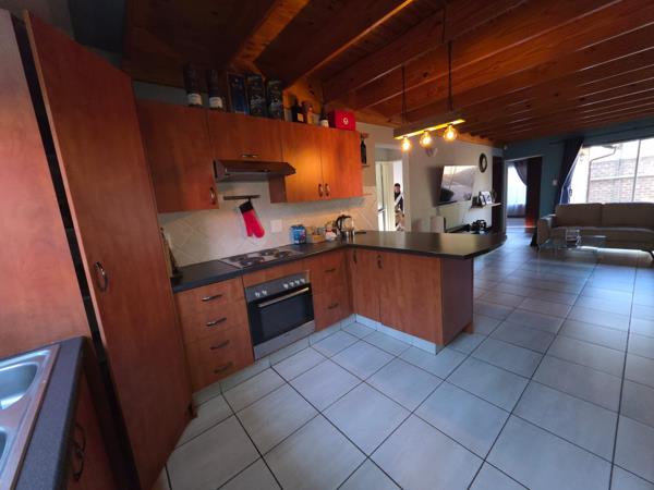 The open-plan lounge creates a warm, inviting space perfect for family time or entertaining. The kitchen is fully functional with a built-in stove and ample cupboard space. Enjoy low maintenance living with tiled and wooden floors throughout.