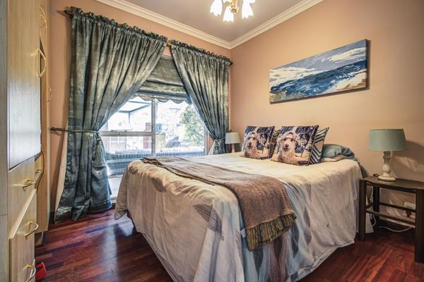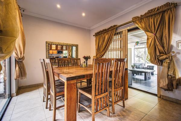 Outdoor living is a true highlight, with three covered patios offering multiple entertainment zones. One patio is fully enclosed with glass doors and includes a built-in braai, all overlooking the sparkling swimming pool and beautifully landscaped garden.