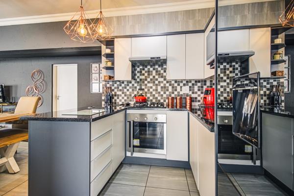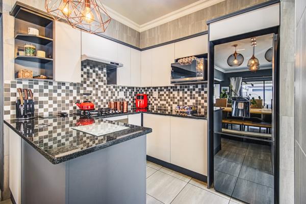 As you step through the front door, you''ll be greeted by a free-flowing contemporary layout that exudes elegance. The clean-cut design is sure to catch your eye. The spacious lounge seamlessly leads into a combined dining area, which in turn leads to a fabulous open-plan kitchen. With sleek granite countertops and ample cupboard space, this kitchen is both functional and stylish. And let''s not forget the top-of-the-range 4 plate gas burner. The separate scullery boasts a double sink basin, adding to the convenience.