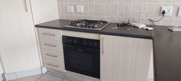 Step into a large open-plan tiled lounge featuring elegant French doors, seamlessly flowing into the combined dining area. The open-plan kitchen impresses with a breakfast counter, granite countertops, tiled floors and walls, and a gas stove, making it both stylish and practical. Additional features include a double-sink scullery with dishwasher space, plus a pantry cupboard with shelving for excellent storage.
