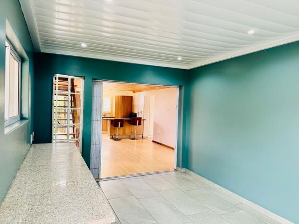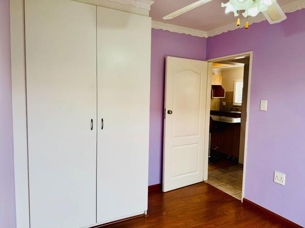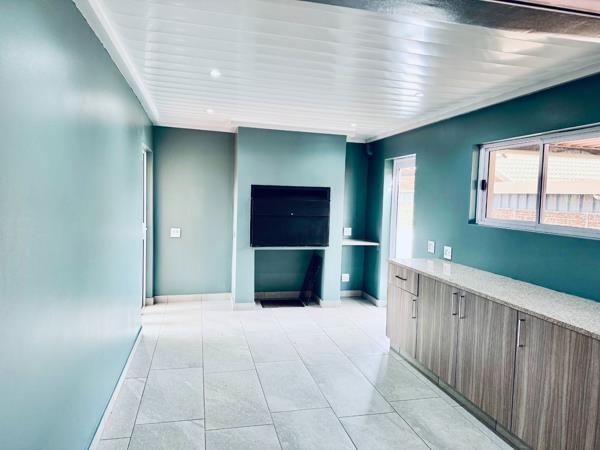 A COSY IMMACULATE HOME. This property consists of three bedrooms in total, two downstairs with main ensuite bathroom, open plan lounge and kitchen, two bathrooms in total and an enclosed braai area which can be used as an additional lounge and a lovely cute garden.