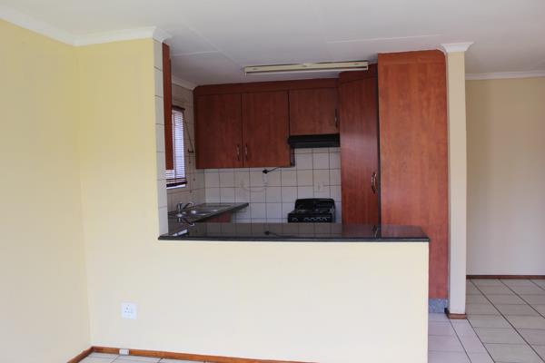 The townhouse boasts three well-sized bedrooms, all fitted with built-in cupboards to ensure ample storage. The main bedroom features a private en-suite bathroom, complete with both a bath and a shower, offering comfort and convenience. The remaining bedrooms are serviced by a neatly finished second bathroom.