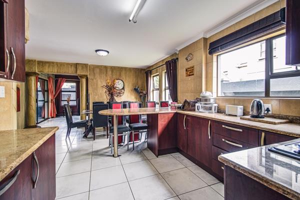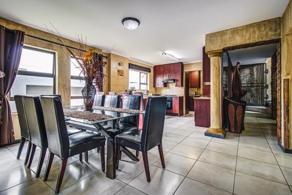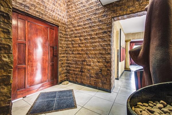 Indulge in a Jacuzzi room with doors opening onto a sunset balcony, complete with built-in braai. Entertain with ease on the lovely patio featuring a second braai, overlooking your private garden. This tranquil setting offers both relaxation and vibrant family living.