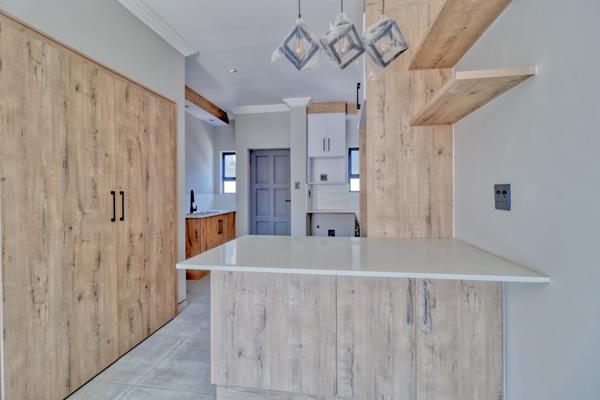 Step inside to discover a spacious and inviting living area, comprising a cozy lounge, a well-defined dining area, and a modern kitchen equipped with built-in cupboards for your convenience. The kitchen provides an excellent space for culinary exploration and preparation.