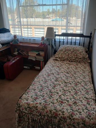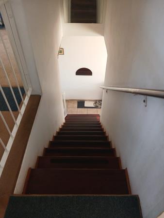 Moving towards the upstairs section, you are welcomed by a very large sunny bedroom with loads of wardrobe cupboards. The second bedroom is slightly smaller yet functional. These two rooms share one bathroom consisting of a bath, toilet and a basin.