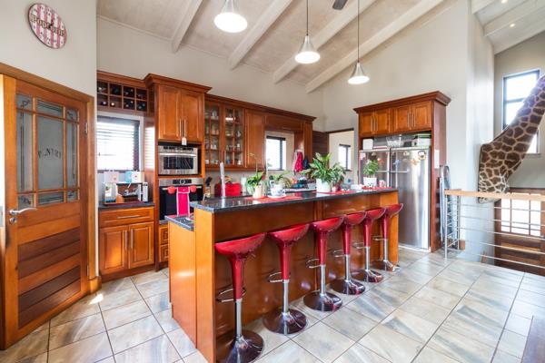 Step out on the balcony to enjoy sweeping views and a cozy fireplace for those chilly evenings, ascend further to the viewing deck offering unparalleled vistas of the estate landscape, and descend back to the ground level, where a family room and lounge await leading to another enclosed patio area where a gas/coal braai await and seamlessly flow to a pool with bikini seating and a large boma seating area for relaxed outdoor living.