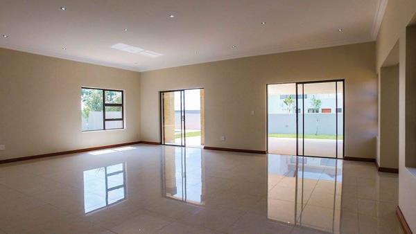 An exquisitely designed single-story house is now available for purchase in the serene Serengeti Lifestyle Estate. This stunning property boasts expansive open living spaces that facilitate family bonding while engaging in activities such as watching movies or playing games, all while someone prepares meals in the kitchen. The open-plan living area accommodates a lounge, dining room, and study nook.