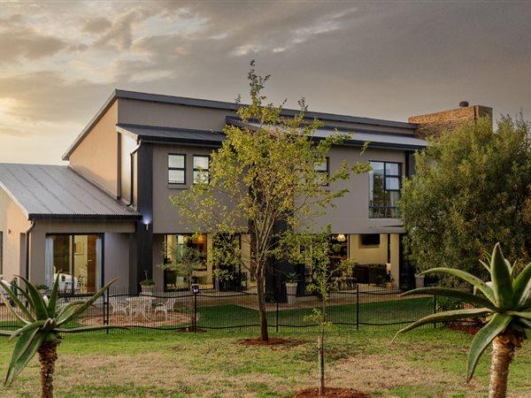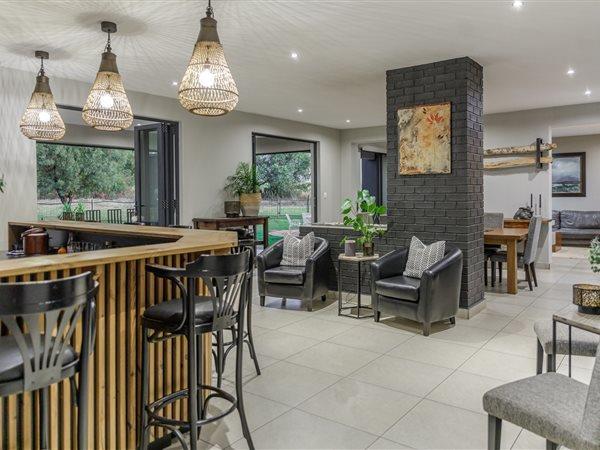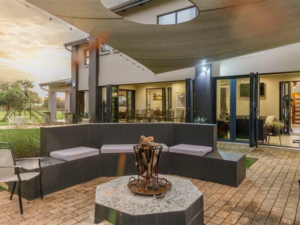This property boasts six en suite bedrooms with underfloor heating in the bathrooms. Open plan kitchen, living areas and bar flow out to a braai area with stacking doors opening onto the boma, swimming pool and garden. Great for entertaining, a home for all seasons emphasising indooroutdoor living. It offers a large home office that has access to the garden, four garages as well as staff quarters.