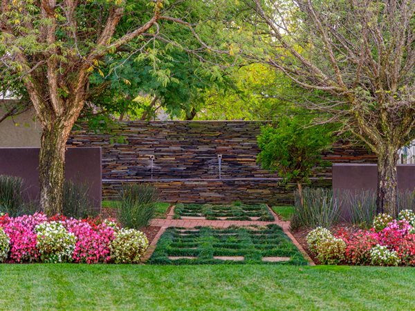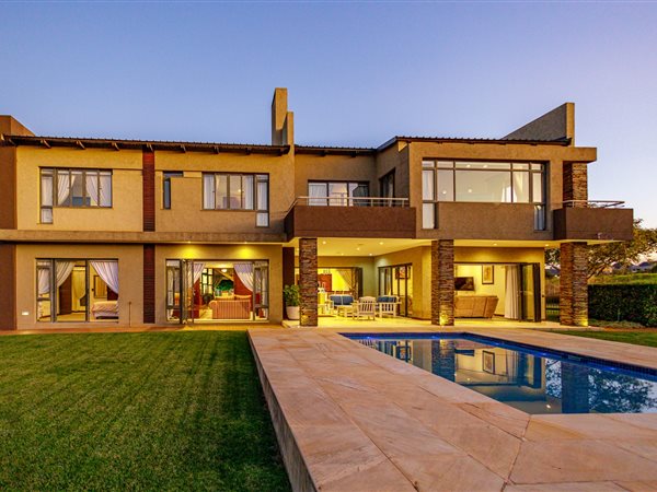 It also offers an integrated sound & technology system, a large covered patio with a build-in braai overlooking an inviting pool that is surrounded by a magnificent manicured lawn area. The opulent garden is simply a riot of color as the sunlight plays off the petals and leaves of the plants. The sound of birds and delightful mix of fragrance that is brought alive, that only Mother nature herself can create.