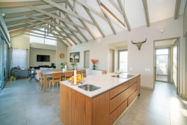 The seamless integration of the open-plan lounge, kitchen, and dining area enhances the home''s spacious ambiance, facilitating effortless entertaining. The kitchen showcases Caesarstone countertops with a central island, blending aesthetics with practicality. Thoughtfully incorporated energy-efficient fixtures throughout the property ensure not only a sustainable lifestyle but also savings on electricity bills, complemented by the inclusion of an inverter (batteries to be added).