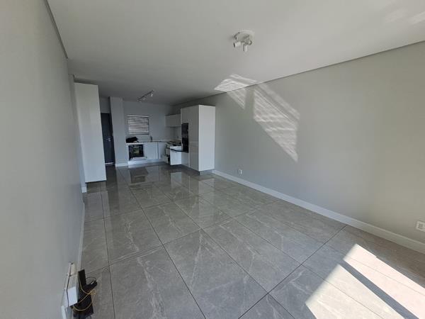 Contemporary 2-bedroom apartment featuring a main en-suite bathroom, along with a family bathroom. The kitchen is equipped with high-end Smeg appliances, Caesarstone countertops, and a glass top stove, seamlessly connecting to the lounge area. Enjoy the sliding doors that lead to a balcony complete with a built-in braai and stunning views.