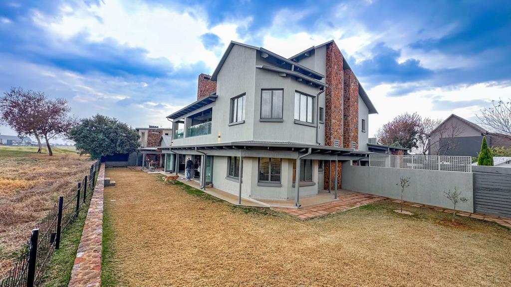 The kitchen is perfectly placed and has a center aisle, pantry, scullery leading to a courtyard and integrated appliances. Just off the kitchen to one side we have a delightful sun room perfectly placed for relaxation and morning coffee with family and friends overlooking the golf course, to the other side of the kitchen a large dining area that can seat at least 12 people leading to a large lounge/tv room with a magnificent burning stove for those chilly evenings, leading from the open plan we have an enormous undercover patio & braai area for the ultimate entertainer, relax looking over the manicured private garden with immediate access to the golf course or take a plunge in the pool.