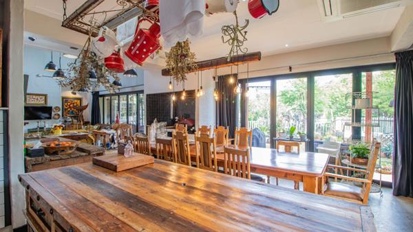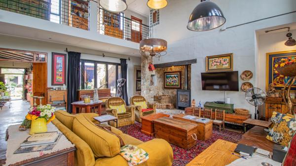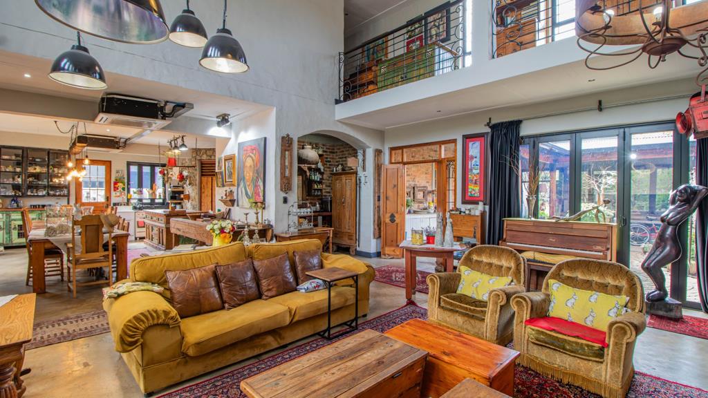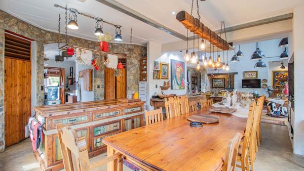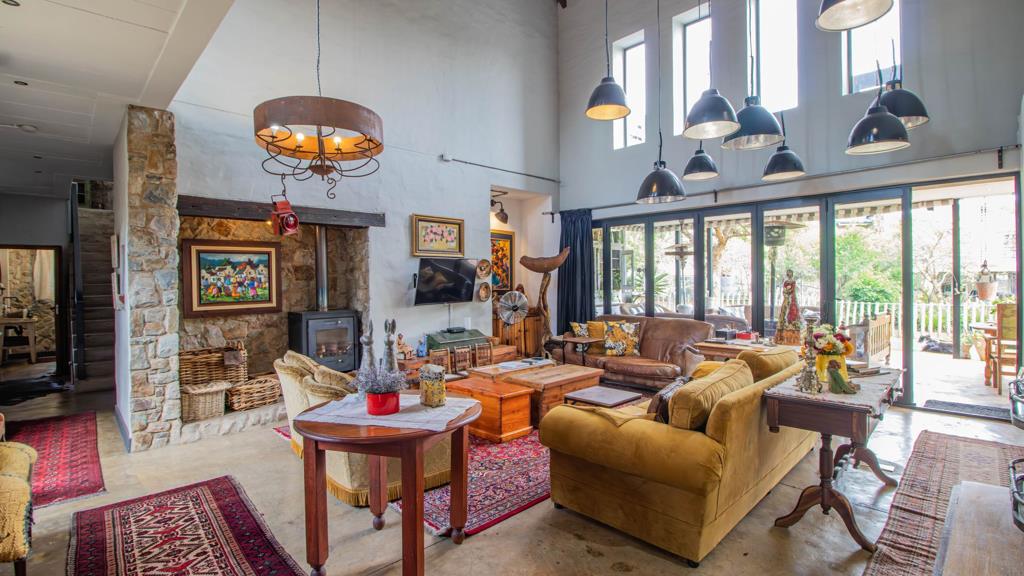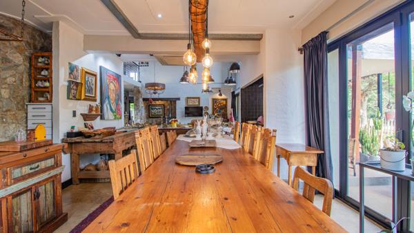 Enter the large open plan with amazing vaulted ceilings and a true traditional appeal..large wood burning stove , nooks, and crannies abound in this special house, the dining area can seat up to 14 people with endless more space..the dining room has an adjacent kitchen and leads to a further pantry, scullery and chef''s kitchen..a barn style door leads to a courtyard and access to the side of the property, access to the garage is also from the kitchen and houses lots of working space and the inverter which keeps you covered in case of any power outages.