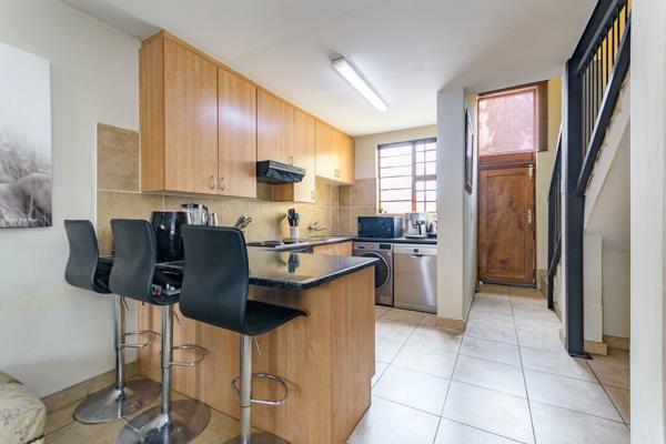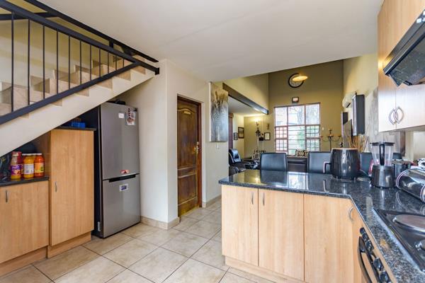 3 Bedroom 2.5 Bathroom Modern Duplex . This contemporary 3-bedroom townhouse spans three levels and features 2.5 bathrooms. The spacious lounge includes a sliding door that opens to an indoor braai-covered patio, which in turn leads to an outdoor deck and a beautifully maintained garden. The modern granite kitchen is complemented by a convenient guest toilet on the ground floor. The property also offers a double automated garage.