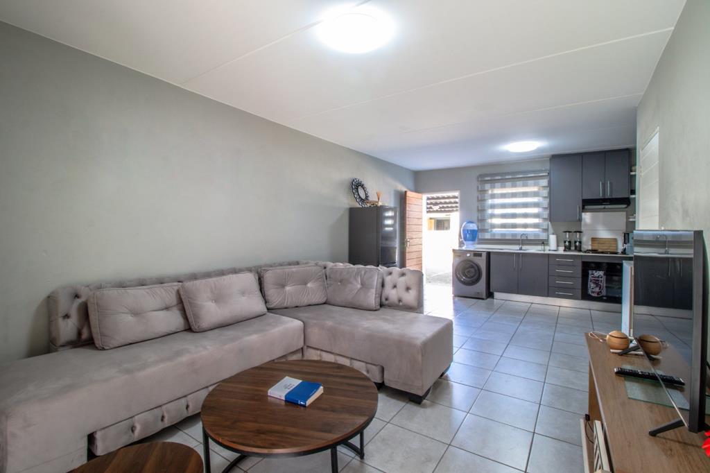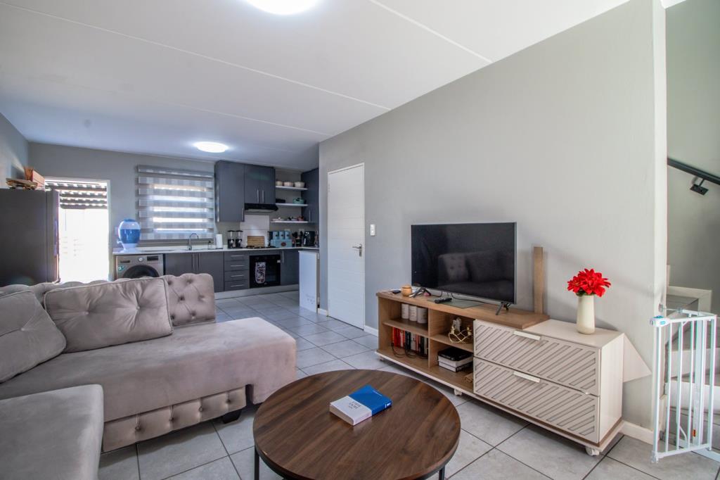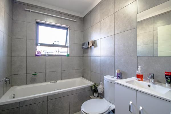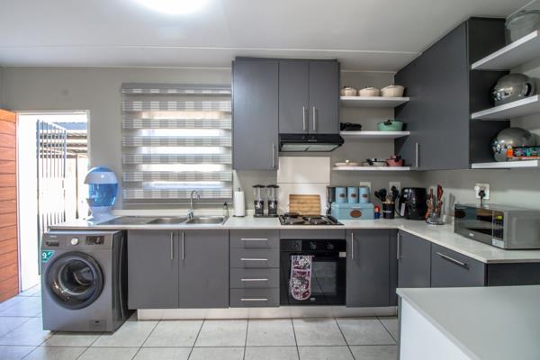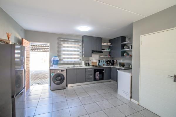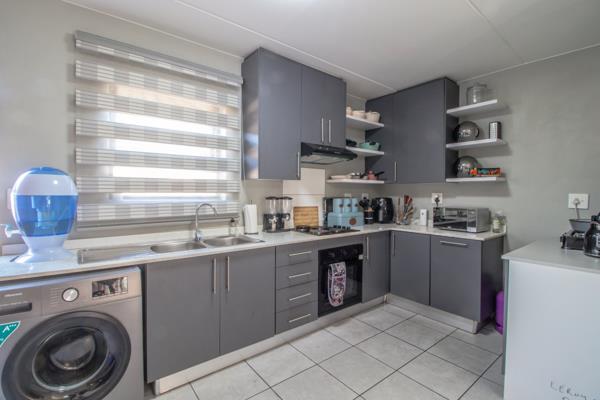 The stylish kitchen features ample cupboard space, room for double door fridge, undercounter appliance and a sleek, contemporary design that flows effortlessly into the spacious open-plan lounge. Large sliding doors open out to your own private garden a serene, pet-friendly space complete with a built-in braai, perfect for entertaining or relaxing in the sun.