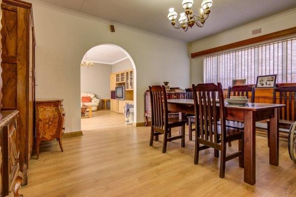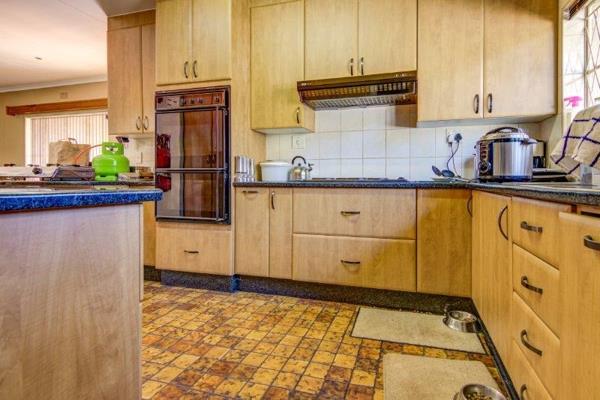 Lots of paving in front of 3 garages with roll-up doors (1 caravan door). 2 Carports. Servants quarters with room and bathroom. Marbelite pool in neat and established garden. Burglar bars, security doors and electric fence. Close to schools and all amenities.