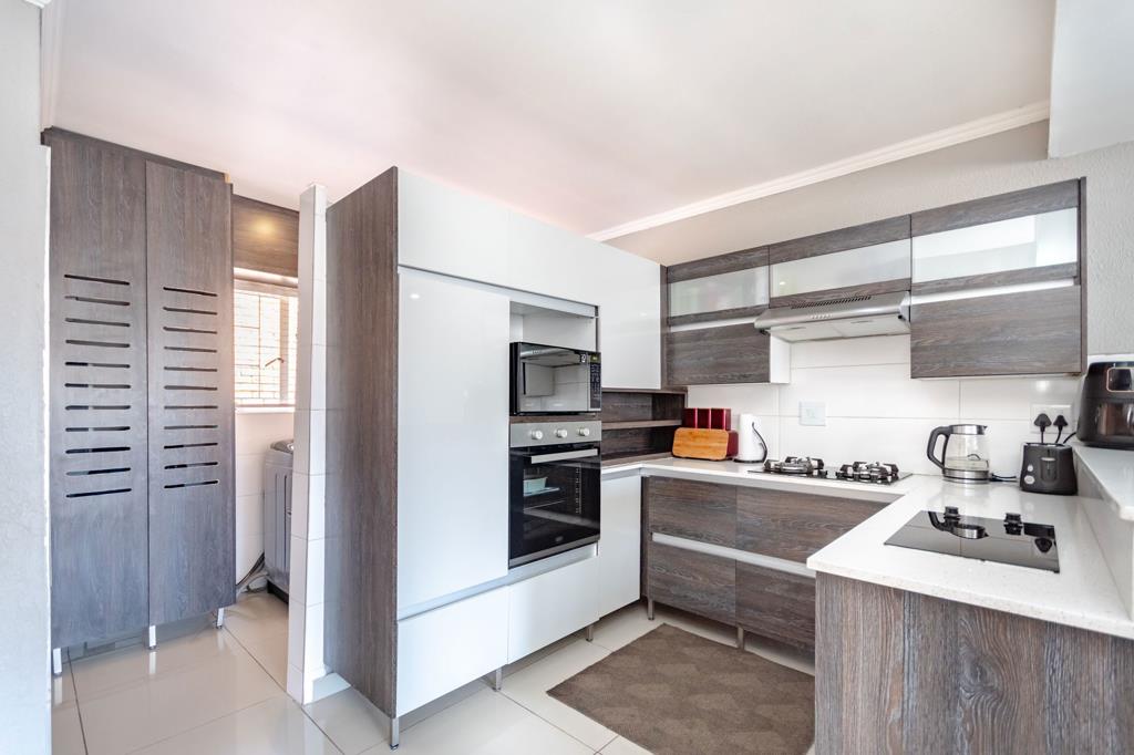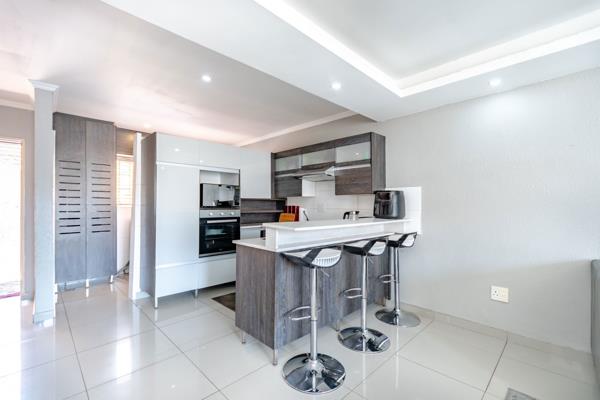 Fully Renovated 3-Bedroom Simplex Townhouse with Inverter. Step into modern comfort with this beautifully renovated 3-bedroom, 2-bathroom simplex townhouse. Bedrooms: Three spacious rooms with stylish wooden laminate flooring, including a main bedroom with a sleek ensuite bathroom. Bathrooms: Both bathrooms are fully upgraded, with the main bathroom tastefully modernized. Kitchen: A contemporary, fully renovated kitchen featuring Caesarstone countertops, gas and electric stove options, and quality finishes. Living Area: Open-plan lounge with porcelain tiles throughout, seamlessly flowing to the back garden perfect for relaxation or entertaining. Additional Features: Double-door garage for secure parking, and an inverter for peace of mind during load shedding. This home offers the perfect blend of style, functionality, and convenience move-in ready with no work required.
