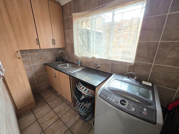 Outdoor living is enhanced by a built-in braai and a private garden. A jacuzzi offers a perfect spot for relaxation, while two garages provide secure parking. Situated within a complex, this property ensures peace of mind with an access gate, security gate, burglar bars, and a totally walled perimeter. A gas geyser adds to the home''s efficiency.