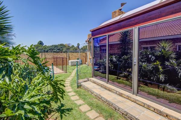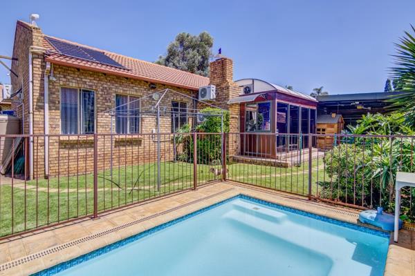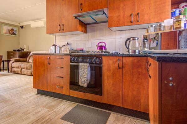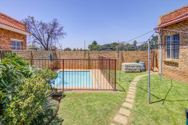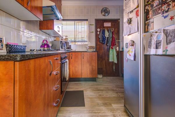 Small established garden with a fenced off fibreglass pool with auto cleaner. 2 Garages with automated roll up doors with direct entry into the house. 2 Carports with roll-up doors. BUrglar bars, security doors, CCTV cameras, 750L water Jojo tank with pressure pump to feed the house, 3 Aircons, gas geyser (Wize system), gas stove, generator change over switch. All of this in an enclosed area.