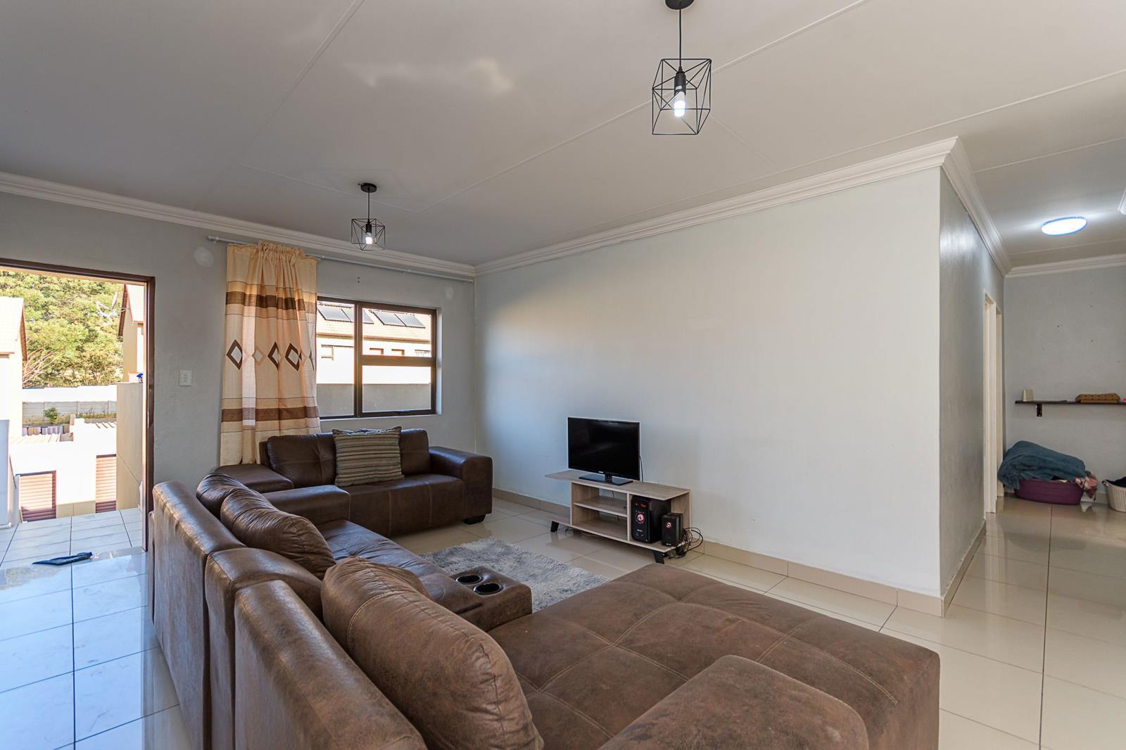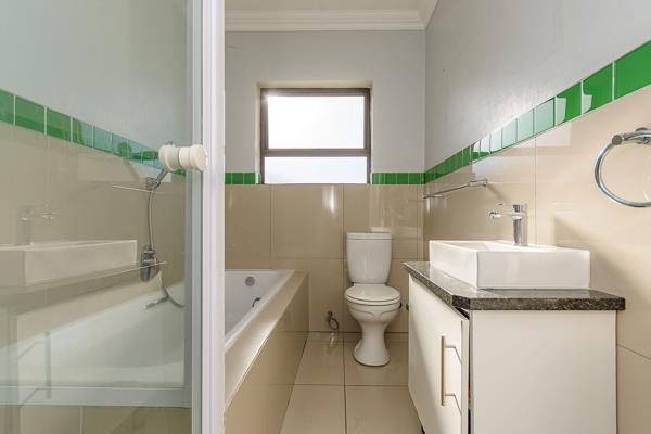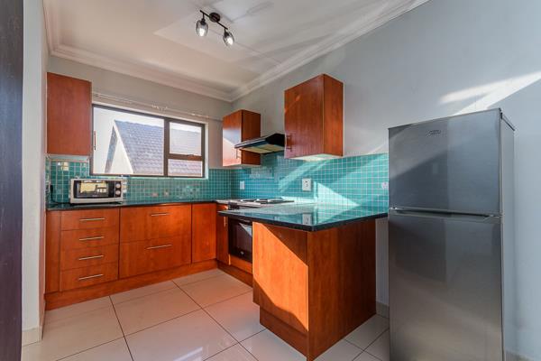 Spacious Open Plan 3 bedroom 2 Bathroom Townhouse . Step into modern luxury with this stunning porcelain-tiled first-floor unit. Designed with both comfort and style in mind, this home features a spacious open-plan lounge and dining area, perfect for entertaining and family gatherings. The exquisite kitchen, complete with a convenient scullery, is a chefs delight. Enjoy the tranquility of three generously sized bedrooms, including a master suite with its own elegant ensuite bathroom. The large patio is ideal for alfresco dining, weekend braais, or simply relaxing in the fresh air. Plus, the double garage provides ample space for your vehicles and additional storage.