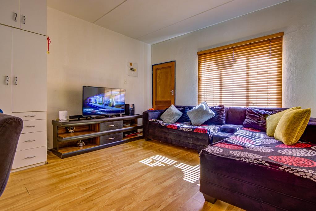 TAMERLANE - Ground Floor 2 bedroom, 1 bathroom, open plan lounge and kitchen townhouse is looking to welcome new owners or keep the current tenants, if agreed by all concerned, laminated flooring in the lounge and bedrooms. Communal swimming pool with braai facilities and covered patio, communal gardens, carport. 24 hour guard with access control.