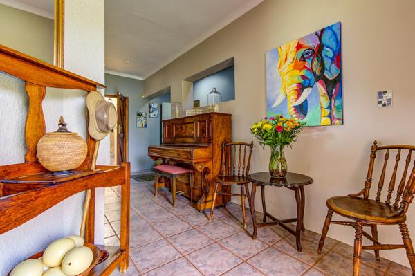 Moving further, the heart of the home is the inviting family room, which seamlessly combines comfort and entertainment. Currently utilized as a barroom and wine cellar, this versatile space features a modern screed floor and offers direct access to the outdoor entertainment area. Stepping outside, a covered patio and expansive entertainment area with a built-in braai overlooks the sparkling, newly renovated swimming pool with an auto-cleaner and epoxy finish. The beautifully manicured garden enhances the ambiance, providing the perfect backdrop for relaxation or entertaining guests.