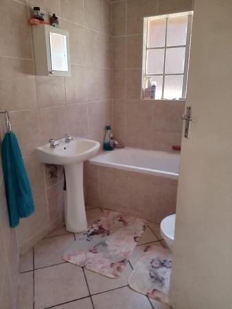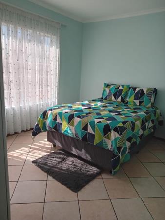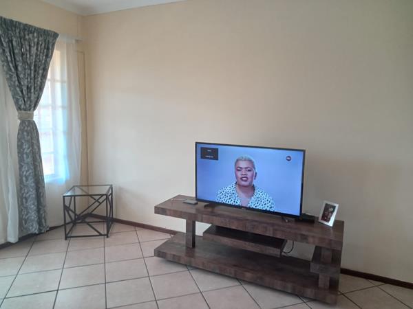 The property features 3 generously sized bedrooms, including a main bedroom with an en-suite bathroom. The unit also offers a second full bathroom for added convenience. The open-plan lounge, tiled throughout, leads onto a private balcony with a built-in braai, perfect for outdoor entertaining. The modern kitchen boasts ample cupboard space, making it ideal for meal preparation and storage.