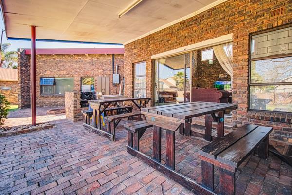 The home includes a well-equipped kitchen, a dedicated dining room, and two spacious lounges, providing ample room for relaxation and entertaining. A dedicated braai room is perfect for indoor grilling. Step outside to a generous 1543 sqm erf, where outdoor living thrives. The expansive backyard features a private swimming pool, a large lawn, and mature trees. A spacious covered patio, with durable brick paving and a built-in braai, creates an excellent setting for outdoor gatherings. A separate flatlet offers versatile accommodation.